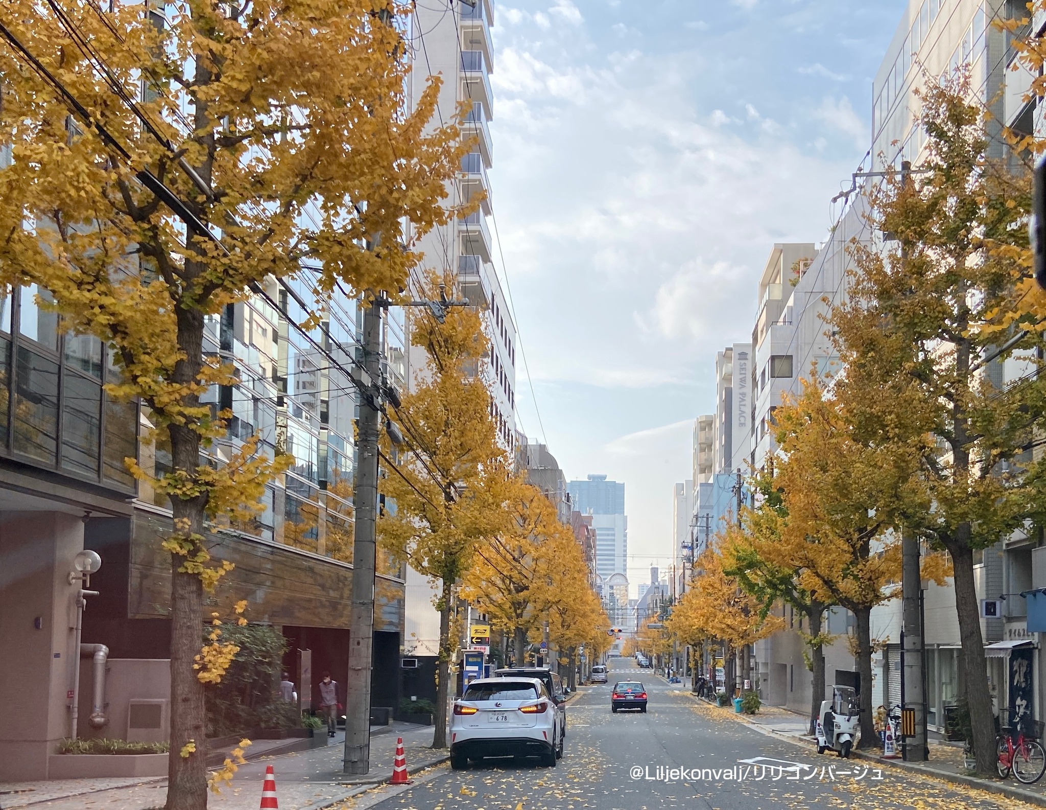 大阪の象徴であるイチョウ並木はすっかり黄色に染まり、いよいよ秋の終わりを告げ始めました