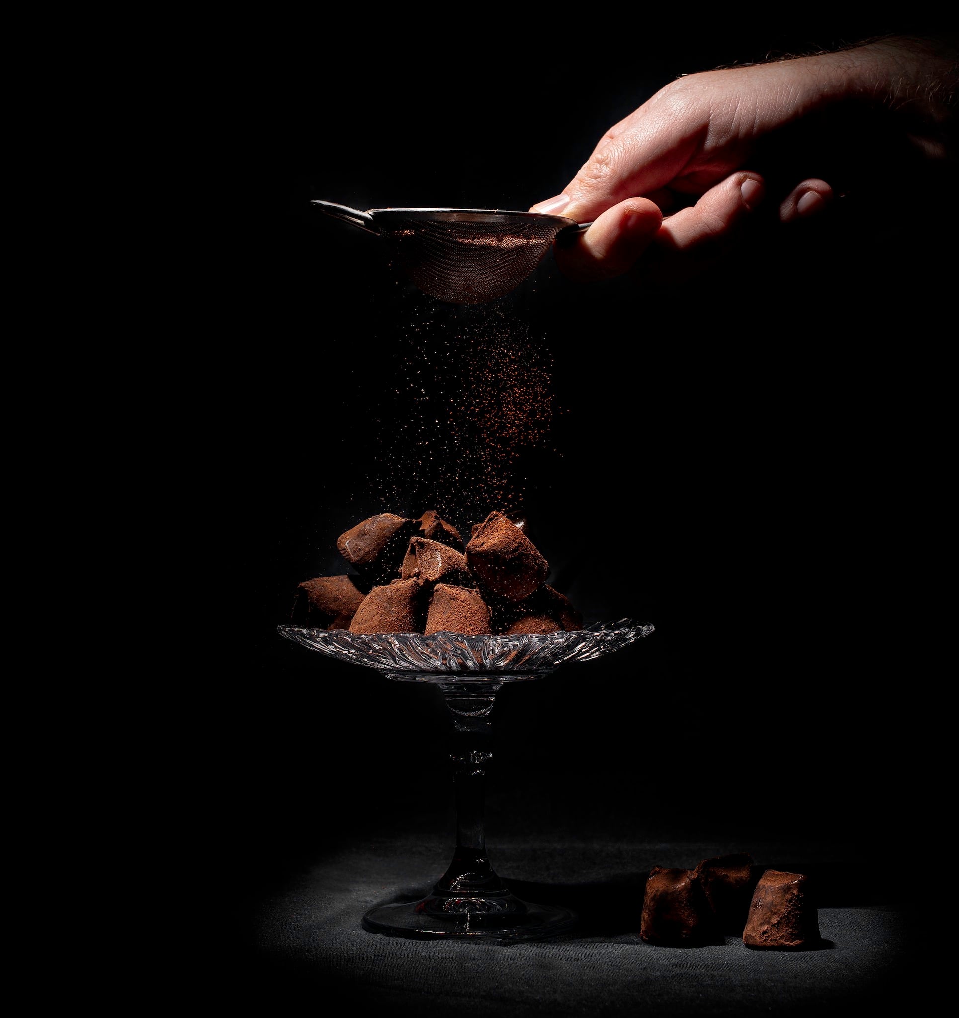 トリュフを触ると手にココアパウダーが付きますので、お召し上がりの際にはピックやフォークをご利用くださいませ。