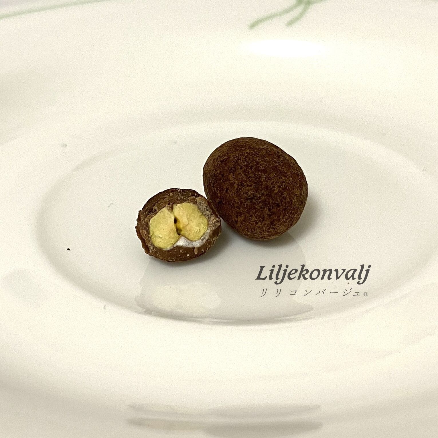 丸ごとピスタチオ、一粒一粒にカラメルコーティングし、ミルクチョコレートで包んだものです